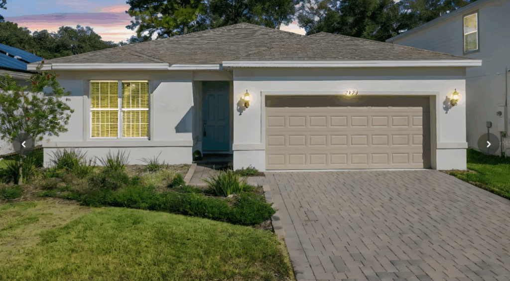 Open Floor Plan with High Ceilings | Spacious Kitchen with Granite Counters, Built-In Oven & Microwave | Bathrooms with Quartz Countertops | Epoxy Garage Floor with Wheelchair Ramp | Paved Patio & Fully Fenced Backyard | This beautifully designed 4-bedroom, 2-bathroom home offers a spacious, open floor plan with thoughtful upgrades throughout. Step inside to find soaring high ceilings, and an abundance of natural light. The heart of the home is the expansive kitchen/family room combo, perfect for both everyday living and entertaining. Enjoy cooking in the chef-inspired kitchen featuring granite countertops, solid wood cabinets, under-cabinet lighting, a built-in oven and microwave, and a large walk-in pantry. The eating space in the kitchen flows seamlessly into the living and dining areas, all designed with an open-concept layout that feels warm and welcoming. The primary suite boasts a luxurious walk-in shower, his-and-hers sinks, and a generous walk-in closet. The split-bedroom layout ensures privacy, with three additional bedrooms and a second bathroom featuring elegant quartz countertops. Step outside through the glass sliding doors in the dining room to a charming paved patio, perfect for relaxing or entertaining. The backyard is fully fenced, offering privacy and security for pets, play, or gatherings. The garage includes an epoxy floor and a wheelchair-accessible ramp, while the inside laundry room provides ample storage for your convenience. Additional features include: a programmable thermostat, and negotiable refrigerator, washer, and dryer, 8′ upgraded interior doors, whole house water softener, reclaimed water yard irrigation system, Upgraded 5 1/4″ Baseboards and whole house brushed nickel finish upgrade for lighting and hardware. Located in a vibrant community with access to a resort-style pool, playground, and sidewalk, this home offers the perfect blend of comfort, convenience, and lifestyle. Minutes from schools, stores, and famous downtown DeLand! Don’t miss your chance to own this beautifully upgraded, move-in-ready home in a desirable neighborhood!