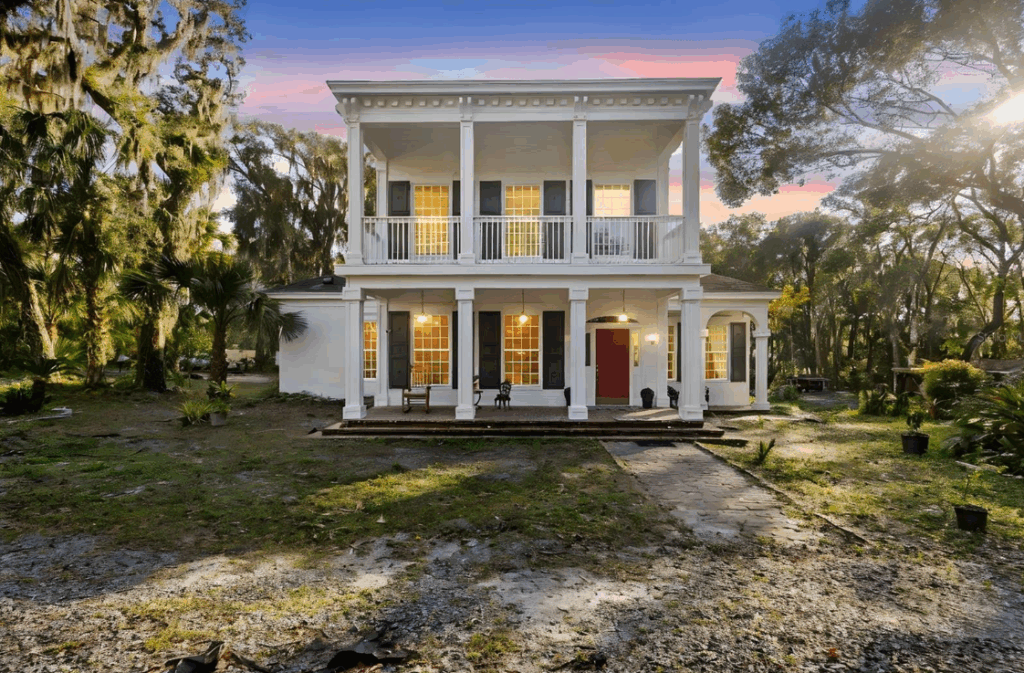 Step into classic Southern charm with this two-story Colonial Revival-style home, set on just over 5 peaceful acres. With its Low Country front porch, vintage details, and wide-open surroundings, this property offers the perfect blend of comfort and country living. As you enter, you are welcomed by a timeless black-and-white tile foyer and a beautiful staircase that sets the tone for the rest of the home.NEW WOOD FLOORS run through most of the home, adding to its classic charm. The living room features three French doors that fill the space with natural light and open to a brick courtyard for all your entertainment needs. The primary bedroom is located on the first floor and includes built-in shelving, with 2 window seat benches. Perfect little area to get lost in a good book. You also have 2 walk-in closets, and a private ensuite bath. Upstairs, you will find two generous bedrooms that share a Jack-and-Jill bathroom and a balcony—great for enjoying the peaceful views. Additional features include PELLA WINDOWS and DOORS, NEW WOOD FLOORS, NEW EXTERIOR PAINT two A/C units, and two half baths downstairs for added convenience. Outside, enjoy the PRIVACY and QUIET surroundings, and true country living vibes. The setting is exceptionally private and serene, tucked beside a fernery with no through traffic and a true sense of quiet. The grounds around the home have been cleared, while much of the natural landscape has been intentionally left in place—allowing you to shape the outdoor space to your vision. Prefer a wooded feel? Mature trees remain. Want open space? The canvas is ready. With close to 6 acres, there is ample room for a pool, circular driveway, workshop, additional garage, or expanded outdoor living areas. Whether you envision gardens, recreational space, or simply enjoying the peaceful surroundings, the land offers flexibility and possibility. The property is being sold AS IS and will benefit from some updating (kitchen, bath) and TLC, presenting an opportunity to personalize a home with TIMELESS ARCHITECTURE AND CHARM in a setting that is increasingly rare. If you are seeking privacy, charm, and space to create something special, this home delivers. The short dirt access road is easy to travel on and this one of a kind home is located only a 10 min drive to downtown DeLand. |